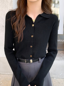 法式polo领针织衫秋冬女内搭毛衣打底衫春秋洋气V领上衣2025新款