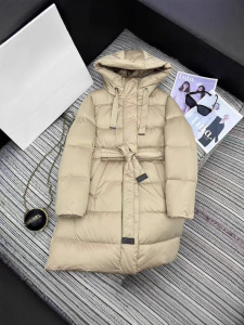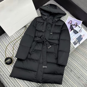 南油女装2025年秋冬Max*新款90白鹅绒腰间系带连帽羽绒服女中长款