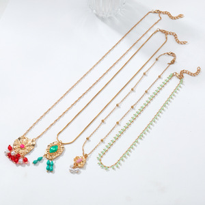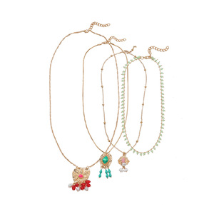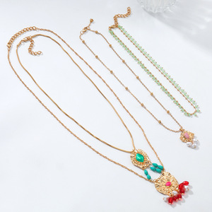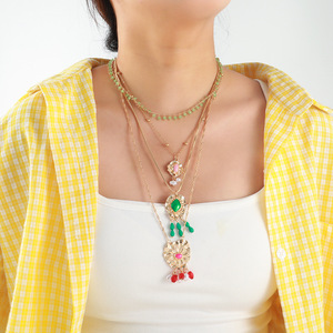 ZA欧美夸张大牌镂空多层链条树脂吊坠项链女秋款锁骨链4件套跨境