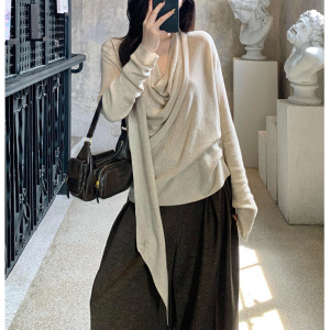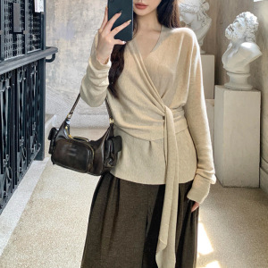 JUEMEI 个性多种穿法法式交叉针织上衣气质温柔松紧弹力百搭女秋