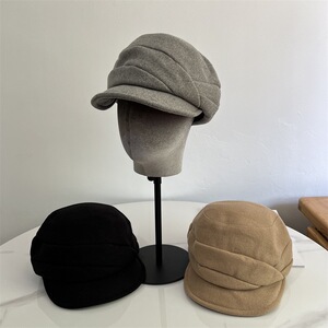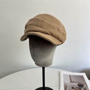 张婧仪同款毛呢加厚褶皱报童帽秋冬韩版高级感复古文艺八角鸭舌帽