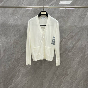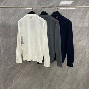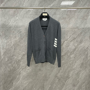 厂家直营TB秋季新款侧边四杠条纹V领针织衫男女同款休闲时尚百搭