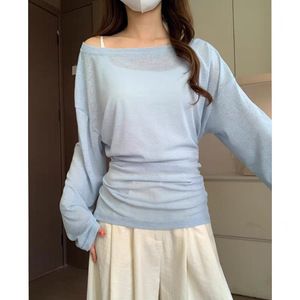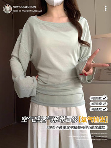 薄荷曼波绿潮搭长袖防晒罩衫女2025初春薄纱简约纯色显瘦空调衫