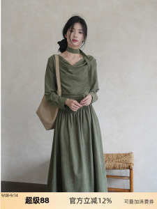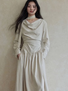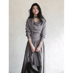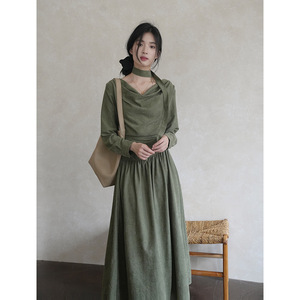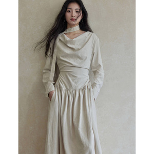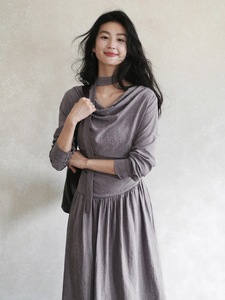 贰羊设计【声声慢】复古极简知识分子禅意连衣裙女长袖新中式长裙
