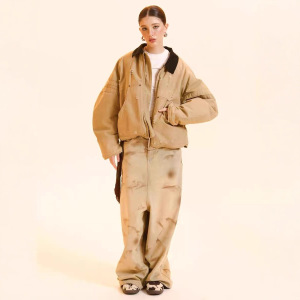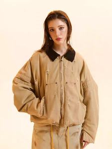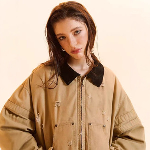 新款2025巴恩风白鸭绒翻领复古废士做旧廓形派克服羽绒服宽松外套