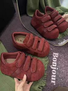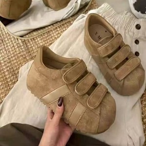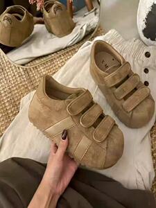 丑萌贝壳头德训鞋女2025新款复古磨砂皮魔术贴大头板鞋洋气女单鞋