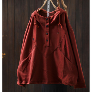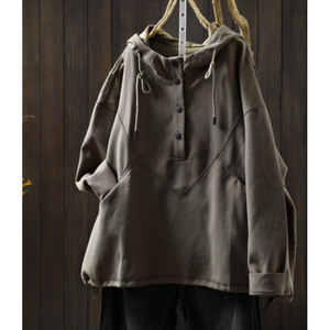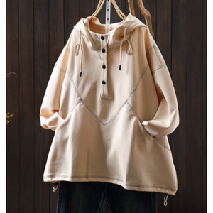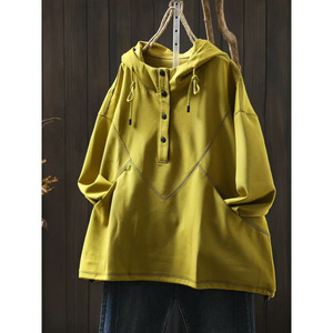 秋季新款 连帽卫衣女拼接感宽松下摆抽绳纯色简约韩版休闲81209
