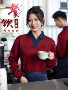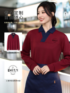 餐饮服务员工作服印logo前厅火锅店奶茶店秋冬季卫衣工装长袖刺绣