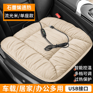 石墨烯汽车加热坐垫冬季毛绒座椅垫12V车载通用保暖usb电热单片垫