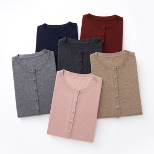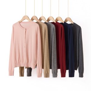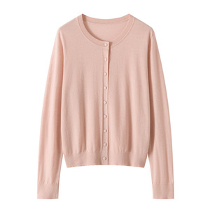 春秋圆领通勤精纺羊毛针织开衫女宽松包扣高级感上衣百搭毛衣外套