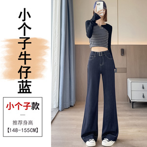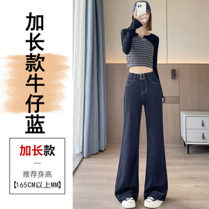 深蓝色竹节软牛仔裤女2025秋季新款高腰直筒垂感微喇阔腿裤拖地裤