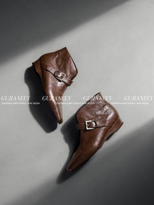 欧洲站女鞋25秋冬时尚软胎牛皮小方头舒适款套筒粗低跟踝靴皮短靴