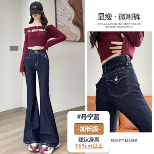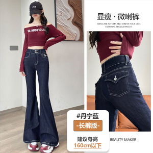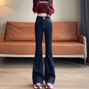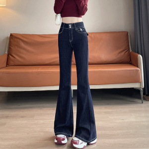 丹宁深蓝色紧身微喇牛仔裤女秋季2025新款高腰显瘦提臀马蹄喇叭裤