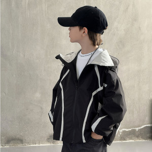 男童春秋季拼色户外服2025秋装韩版儿童痞帅洋气冲锋衣中大童外套