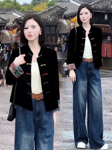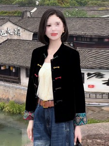 新中式双面穿丝绒提花短外套女早秋新款洋气显瘦国风盘扣立领上衣