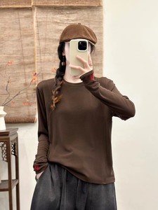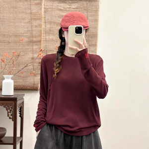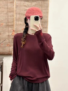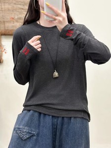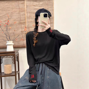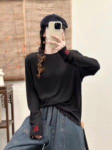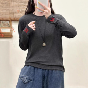 25新品 宽松喜字绣花羊毛简约圆领基础内搭打底衫 显瘦百搭