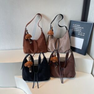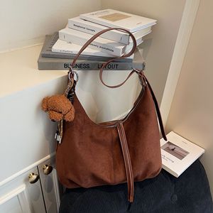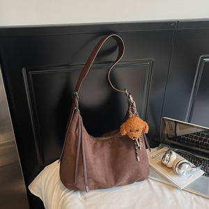 高级感麂皮饺子包新款时尚美拉德磨砂大容量托特包洋气复古腋下包