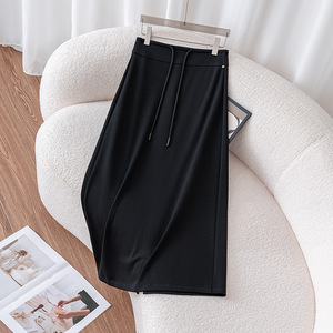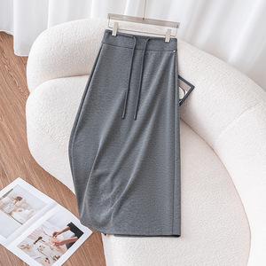 灰色抽绳休闲运动半身裙女2025秋季松紧腰百搭直筒卫裙显瘦a字裙