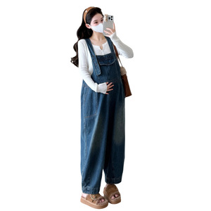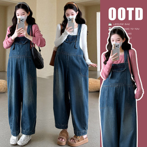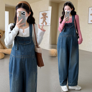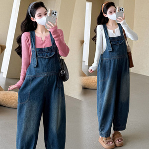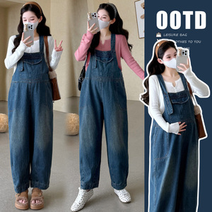 孕妇装套装遮肚不显怀秋冬款牛仔背带裤两件套2025新款春秋季长裤