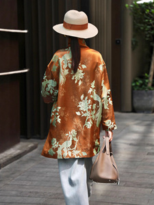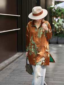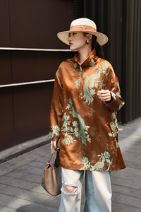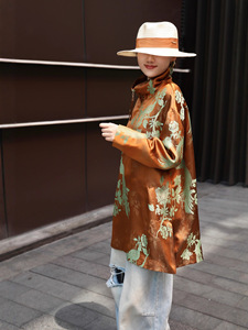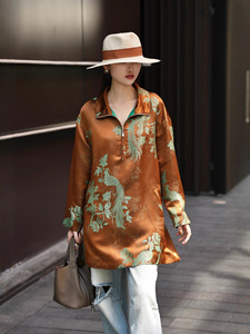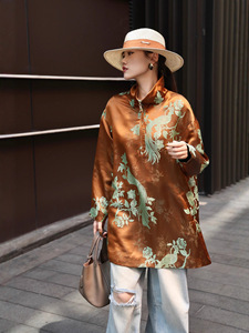 南油批发秋季新款立领半拉链真丝老缎国风上衣衬衫面料桑蚕丝人丝