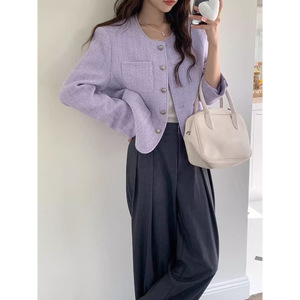 法式紫色小香风外套女装2025春秋新款复古感气质长袖宽松黄色上衣