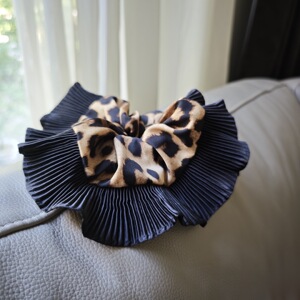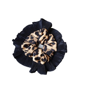 百褶边豹纹大发圈气质高级感欧美小众潮网红复古时髦丸子头花大号