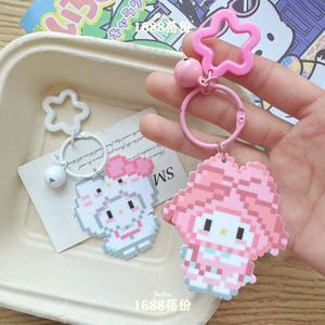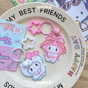 新款小猫像素风星星铃铛钥匙扣萌物精致可爱亚克力宝宝挂件情侣女