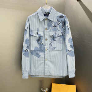 正确版本驴家25SS秋冬新款条纹水墨渲染印花丹宁牛仔长袖衬衫外套