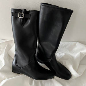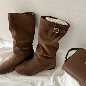 牛皮版~磨砂内增高5骑士靴女显瘦褶皱堆堆靴不过膝长靴西部靴