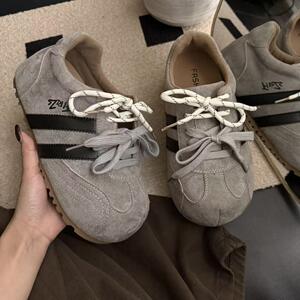 真皮魔术贴大头娃娃鞋女磨砂牛皮厚底勃肯鞋松糕底卡皮巴拉丑萌鞋