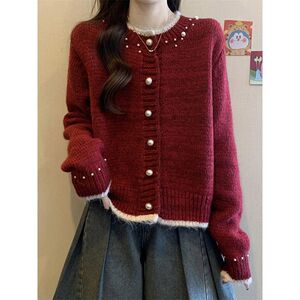 2025年春秋季时尚新款韩版撞色针织衫女小个子休闲百搭开衫上衣潮