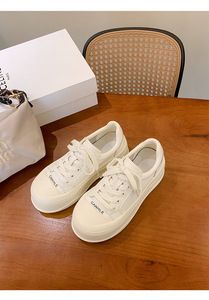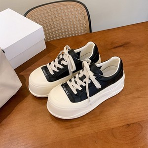 真皮~韩系百搭圆头休闲运动板鞋女2025新款松糕厚底增高小白鞋女