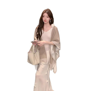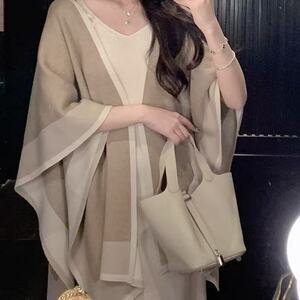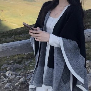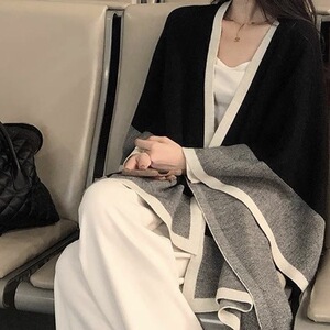 高级感撞色斗篷披肩女春秋季慵懒保暖围巾针织外套