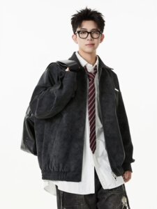 美式复古翻领皮衣外套男士潮流春秋季新款休闲百搭宽松工装皮夹克