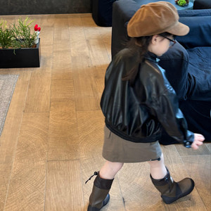 儿童套装春秋款2025新款潮酷女童宽松夹克衫皮衣宝宝超好看半身裙