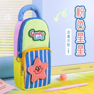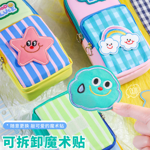 PJ撞色贴片星星笔袋条纹萌趣云朵高颜值文具袋初高中生手提文具袋