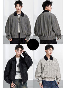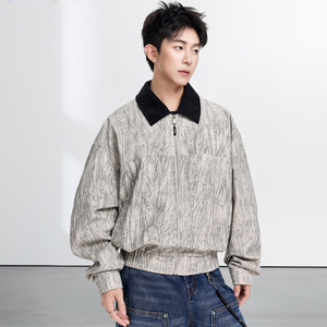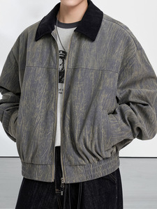 NASA潮牌树皮纹理皱夹克秋季新款外套美式百搭高街休闲翻领上衣
