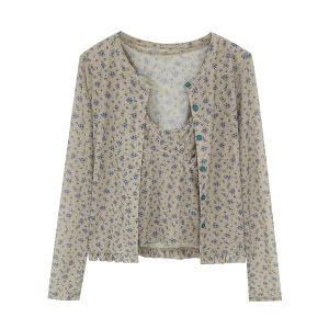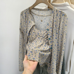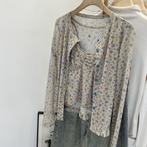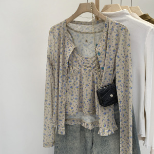 韩风设计感好美碎花吊带长袖开衫外套两件套女装2025秋季新款上衣