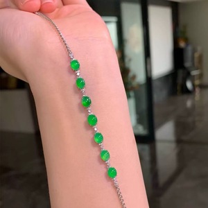 冰种阳绿蛋面翡翠手链满绿帝王绿缅甸天然a货18金镶嵌正品手串女