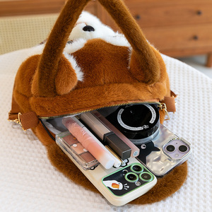 小浣熊公仔双肩包女斜挎包可爱卡通小熊猫儿童手提毛绒玩具包礼物