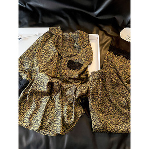 法式高级感豹纹印花长袖睡衣女春秋款2025新款冰丝长裤套装居家服
