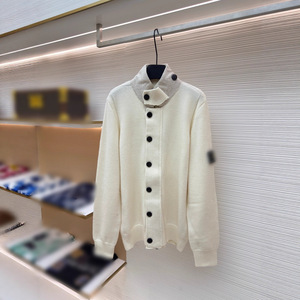跨境STON石头岛原标羊毛针织拼接拉链开衫外套男女同款休闲宽松