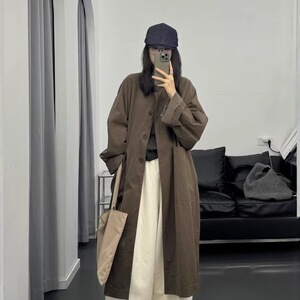 FG感风衣外套女春秋新款韩系小个子翻领格纹拼接中长款上衣服
