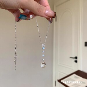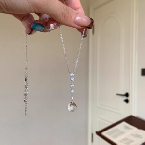 清冷感冰透仿水晶圆珠锆石项链2025新款气质流苏锁骨链