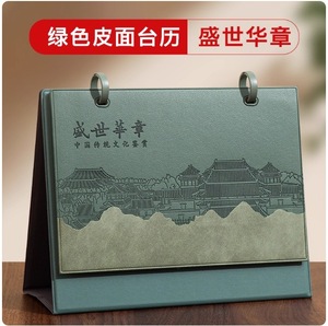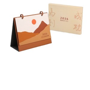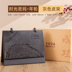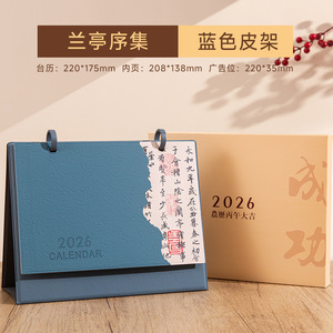2026年皮质台历文创马年日历企业印制logo创意国潮桌面摆礼盒套装