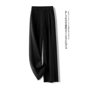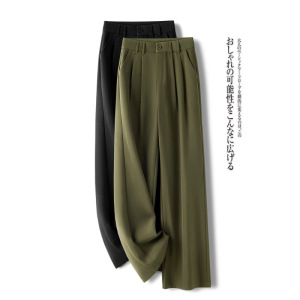 咸菜绿窄版阔腿裤女秋季2025新款时尚垂感休闲宽松气质西装直筒裤