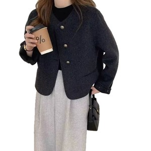今年流行女装2025新款羊绒大衣女春季短款圆领小香风羊毛呢外套