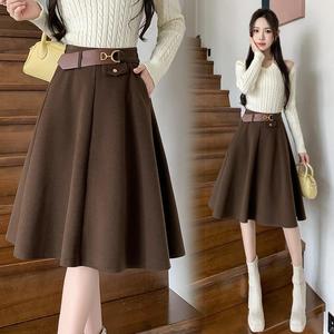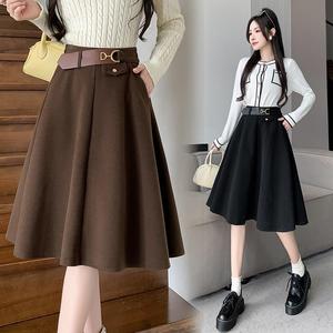 时尚毛呢半身裙秋冬女2025新款气质大摆裙松紧高腰中长款垂感伞裙