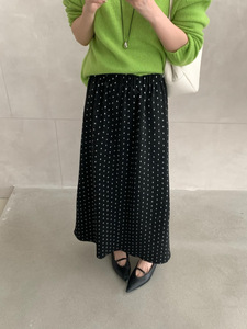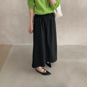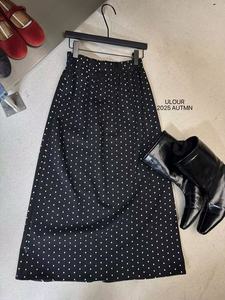 韩系波点毛呢半身裙秋冬后开叉直筒高腰显瘦a字包臀裙中长裙2色