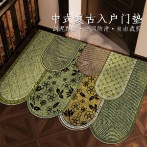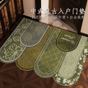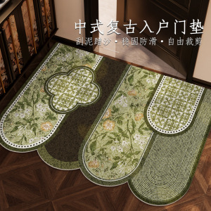 中古风入户门地垫丝圈复古风高级感室内门垫绿色耐脏防滑门口脚垫